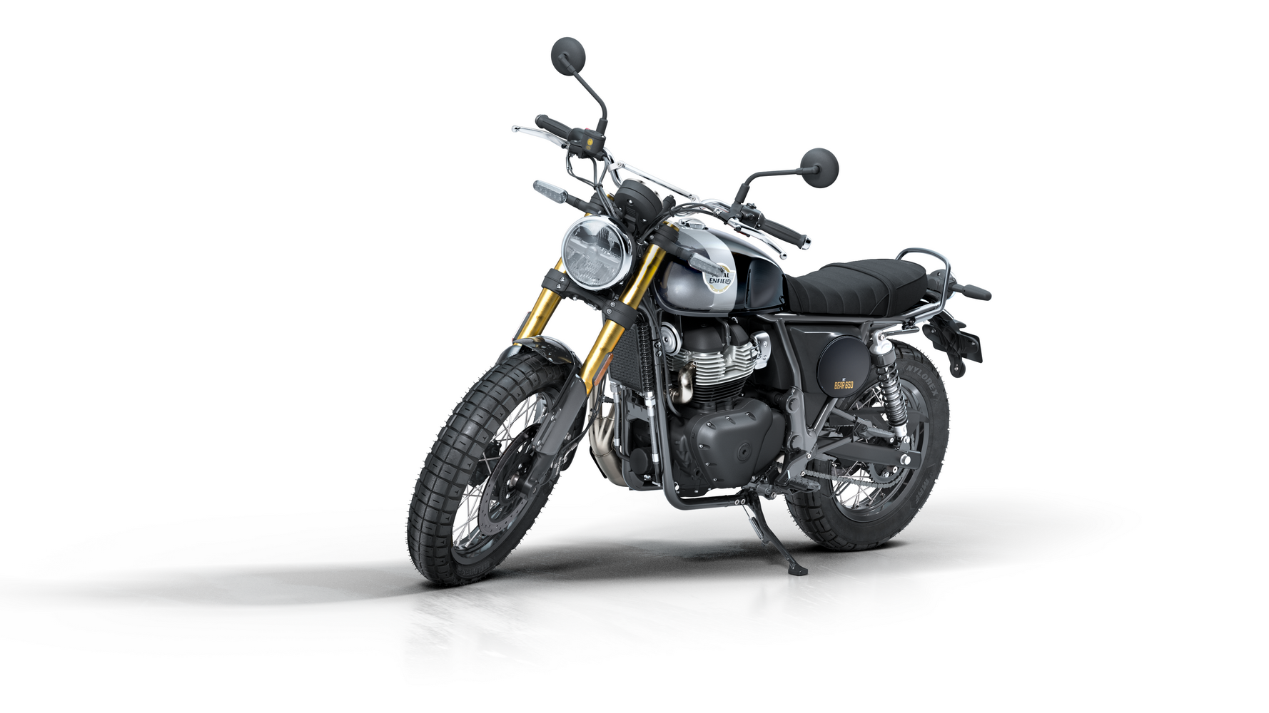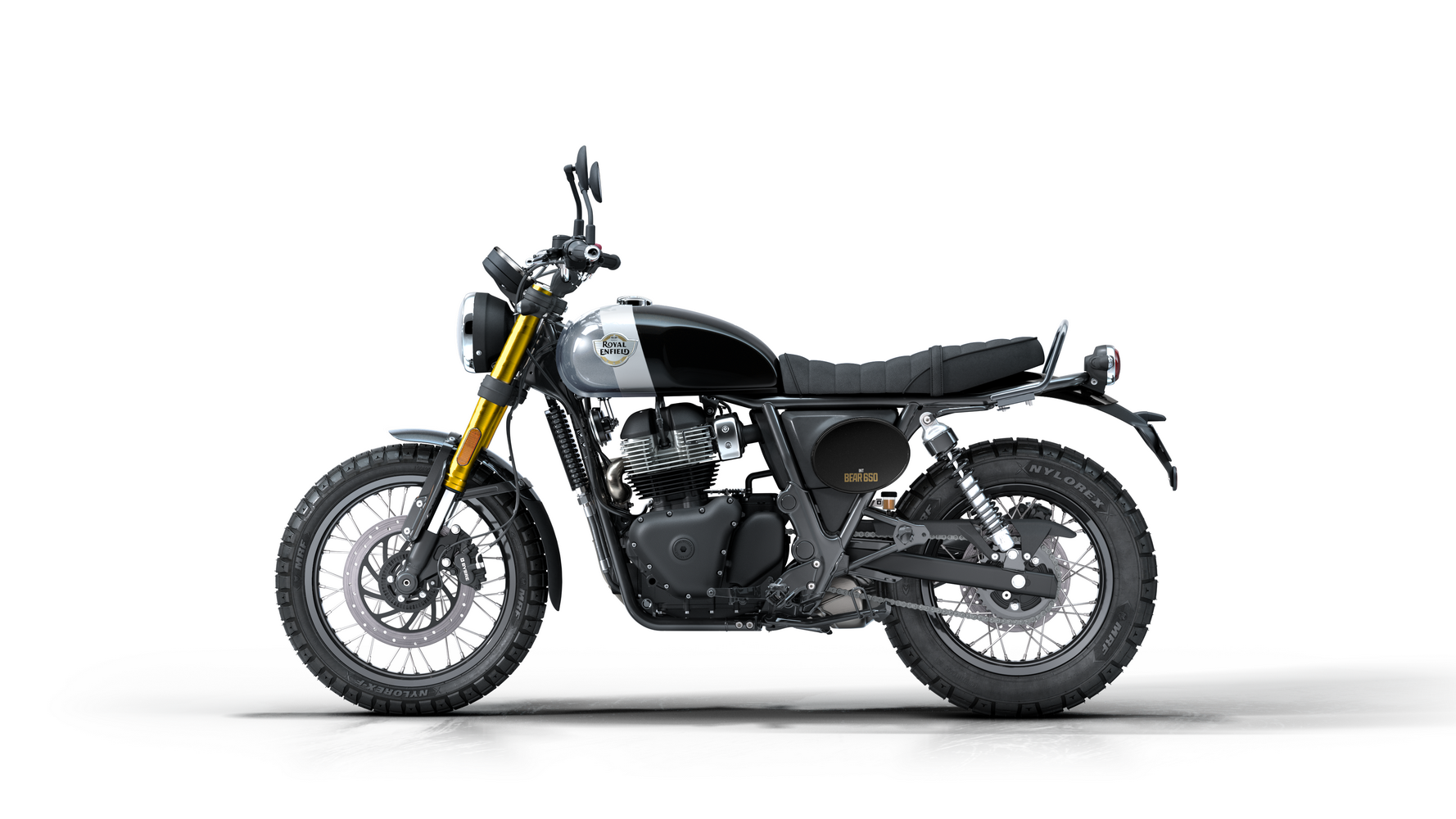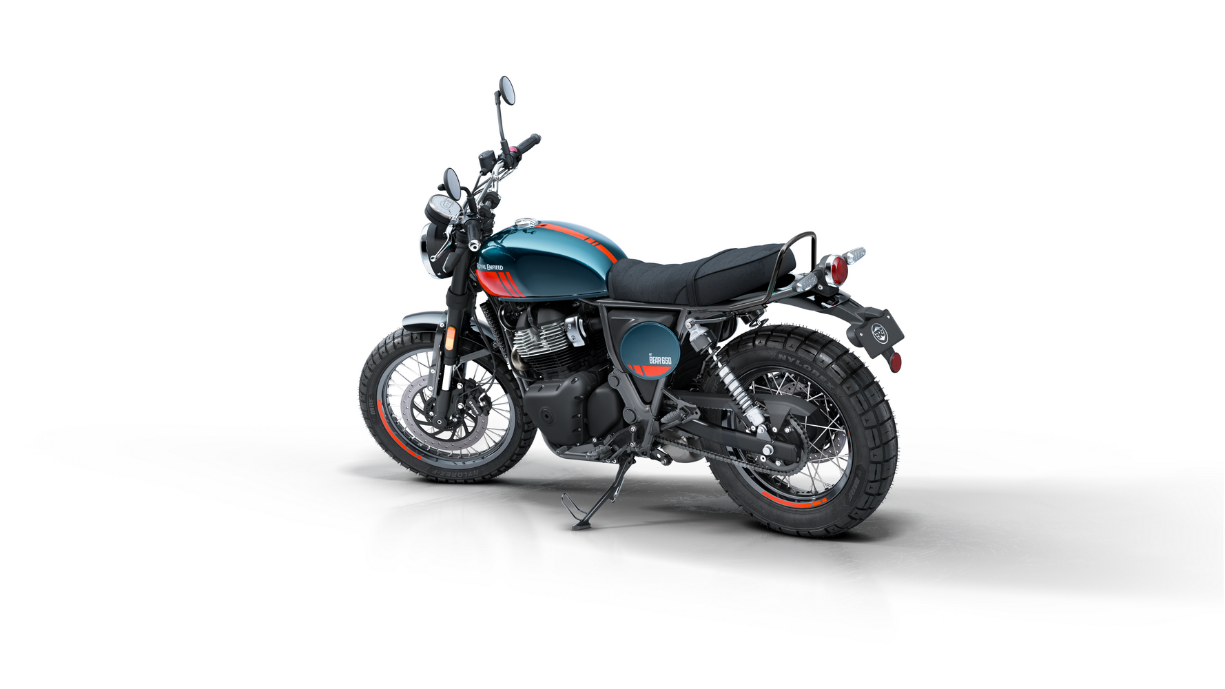 Zajímavosti: Název „Bear“ je úcta k legendárnímu off-road závodu Big Bear Run v Kalifornii a počest „druhého největšího městského parku světa“ (Big Bear Mountain). Proto motorka nese stylové prvky typu plechovitého krytu motoru a závodního čísla. Bear 650 byl poprvé představen v Indii jako součást nových 650 rámů – klade důraz na postoj a pocit spíše než na superrychlé zrychlení. Mezi zajímavosti patří tubeless drátěná kola (vyztužená podle off-road inspirace), ergonomie pro pohodlí i sportovnější volant a také jednoduchost údržby. Výfuk ve stylu dirt track a charakteristický nápis InGutWeTrust zdůrazňují, že jde o motorku pro čisté ježdění, nikoli zbytečné elektronické vychytávky. Bear svým estetickým odkazem doplňuje řadu klasických modelů Royal Enfield, ale přináší energii nové generace.