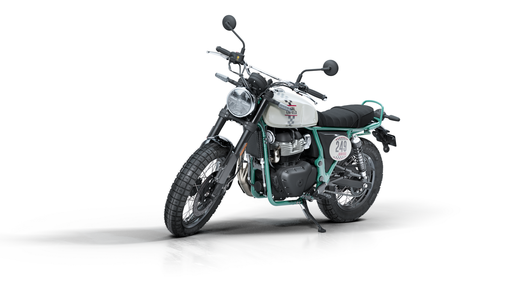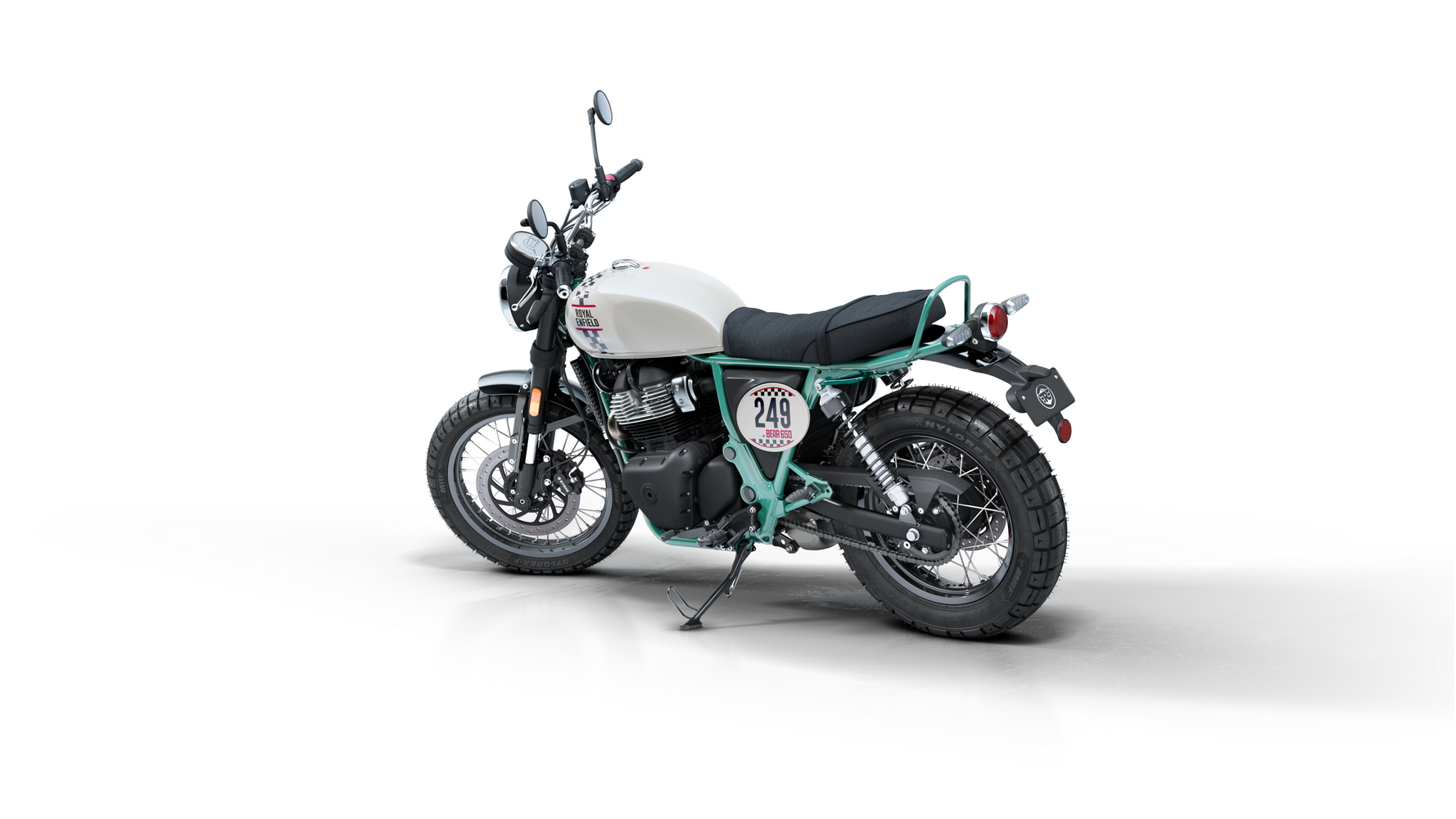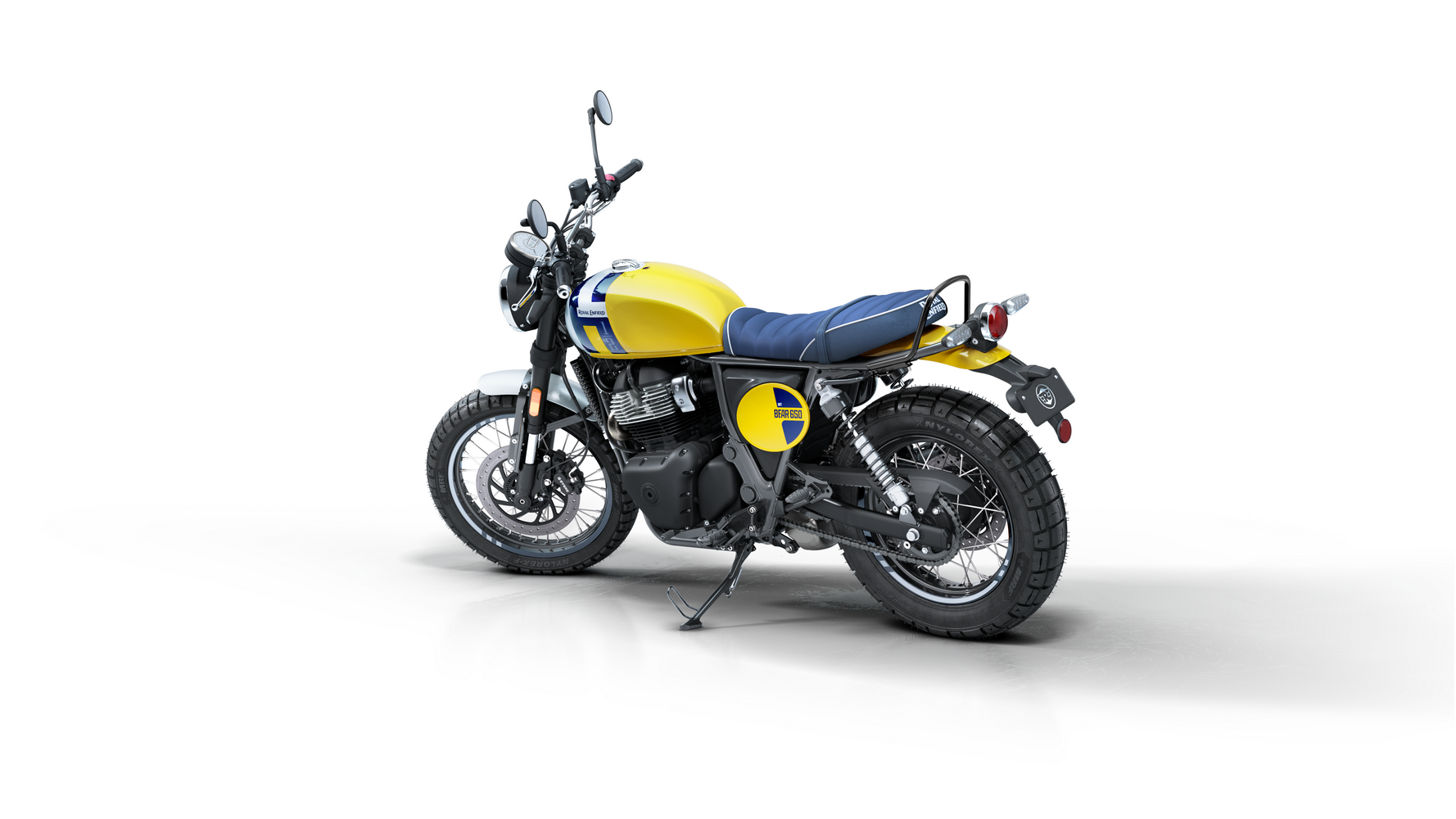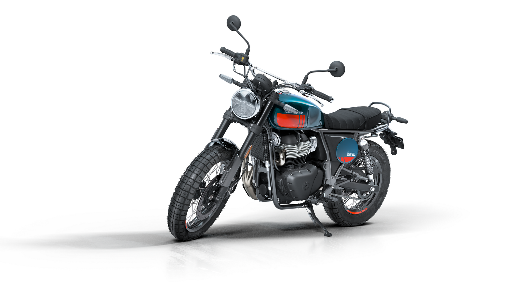 Zajímavosti: Název „Bear“ je úcta k legendárnímu off-road závodu Big Bear Run v Kalifornii a počest „druhého největšího městského parku světa“ (Big Bear Mountain). Proto motorka nese stylové prvky typu plechovitého krytu motoru a závodního čísla. Bear 650 byl poprvé představen v Indii jako součást nových 650 rámů – klade důraz na postoj a pocit spíše než na superrychlé zrychlení. Mezi zajímavosti patří tubeless drátěná kola (vyztužená podle off-road inspirace), ergonomie pro pohodlí i sportovnější volant a také jednoduchost údržby. Výfuk ve stylu dirt track a charakteristický nápis InGutWeTrust zdůrazňují, že jde o motorku pro čisté ježdění, nikoli zbytečné elektronické vychytávky. Bear svým estetickým odkazem doplňuje řadu klasických modelů Royal Enfield, ale přináší energii nové generace.