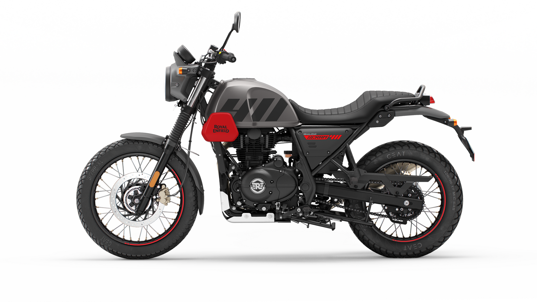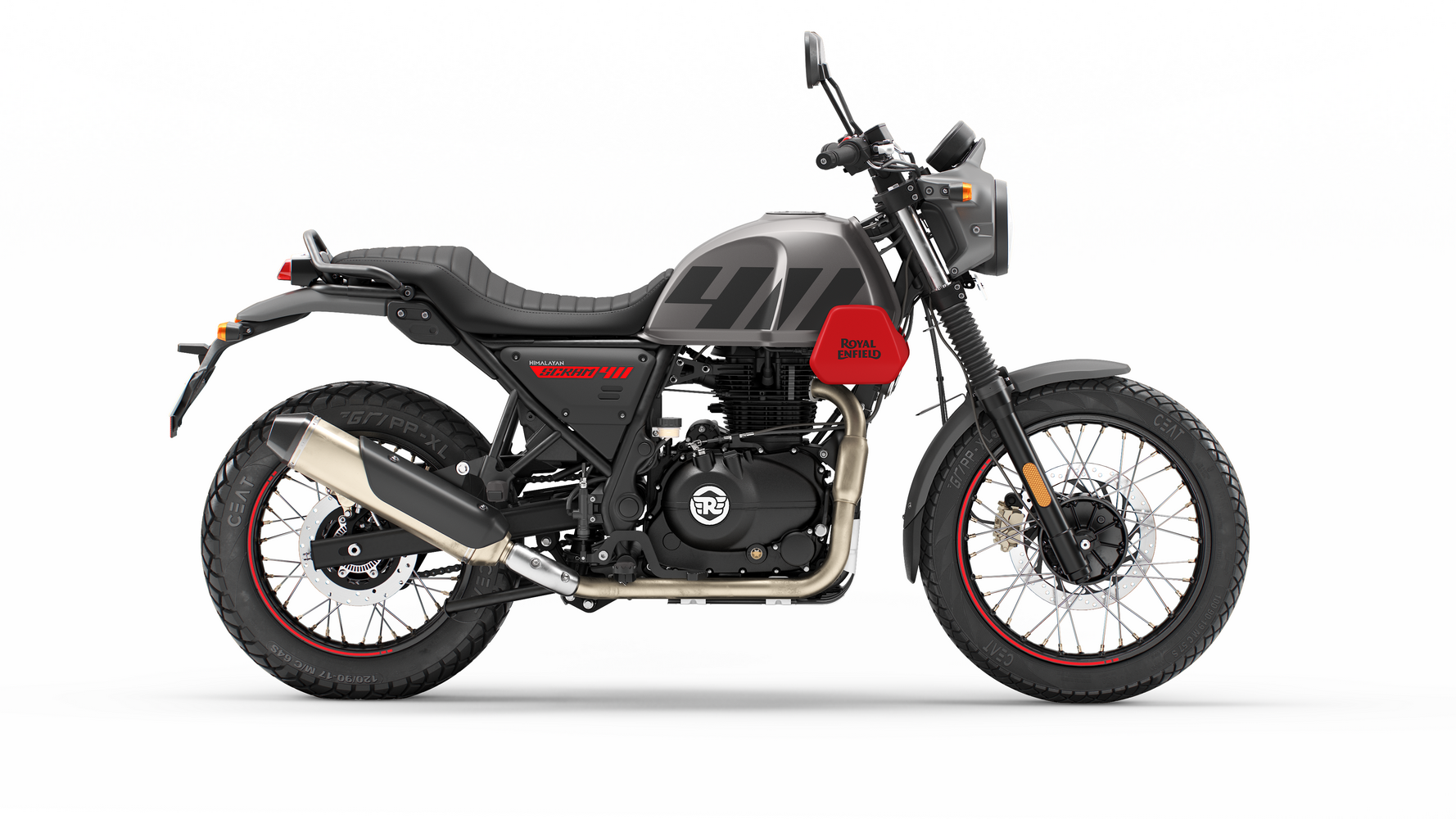Zajímavosti: Název Scram odkazuje na tradici scramblerů – motorek určených pro zábavnou jízdu v terénu. Tento model vychází z Himalayanu, ale nabízí nižší hmotnost a civilnější zaměření. Scram zdědil lehký rám a odolné kolo z trailových modelů, přidal však moderní prvky jako LED světla a možnost instalovat kufry. Výrobce motorku popisuje heslem “Anything, Anytime, Anywhere”, tedy univerzální stroj pro jakoukoli situaci. Profil Scramu je zaměřený na radost z jízdy – má živou grafiku a slogan „Born From Adventure, Tuned For Play“, čímž zdůrazňuje hravost. Scram 440 tak spojuje dobrodružnou podstatu s praktičností městského motocyklu.