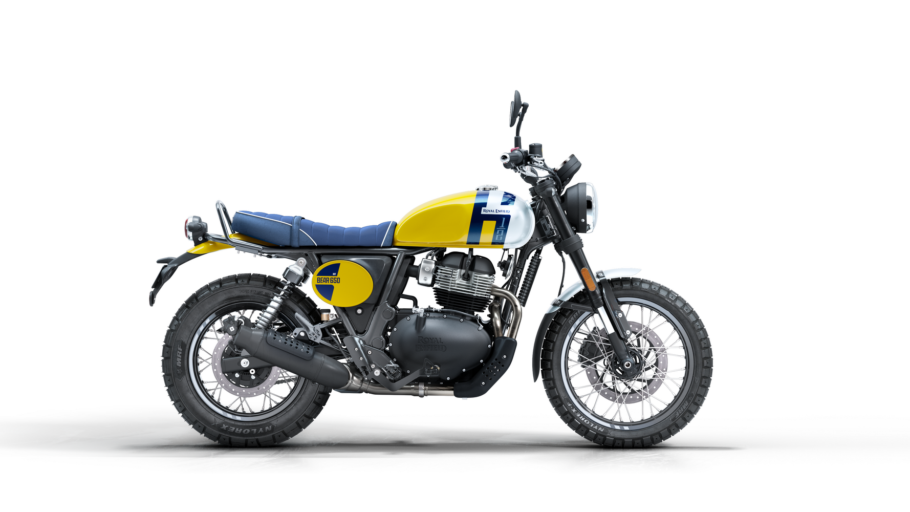 Zajímavosti: Název „Bear“ je úcta k legendárnímu off-road závodu Big Bear Run v Kalifornii a počest „druhého největšího městského parku světa“ (Big Bear Mountain). Proto motorka nese stylové prvky typu plechovitého krytu motoru a závodního čísla. Bear 650 byl poprvé představen v Indii jako součást nových 650 rámů – klade důraz na postoj a pocit spíše než na superrychlé zrychlení. Mezi zajímavosti patří tubeless drátěná kola (vyztužená podle off-road inspirace), ergonomie pro pohodlí i sportovnější volant a také jednoduchost údržby. Výfuk ve stylu dirt track a charakteristický nápis InGutWeTrust zdůrazňují, že jde o motorku pro čisté ježdění, nikoli zbytečné elektronické vychytávky. Bear svým estetickým odkazem doplňuje řadu klasických modelů Royal Enfield, ale přináší energii nové generace.