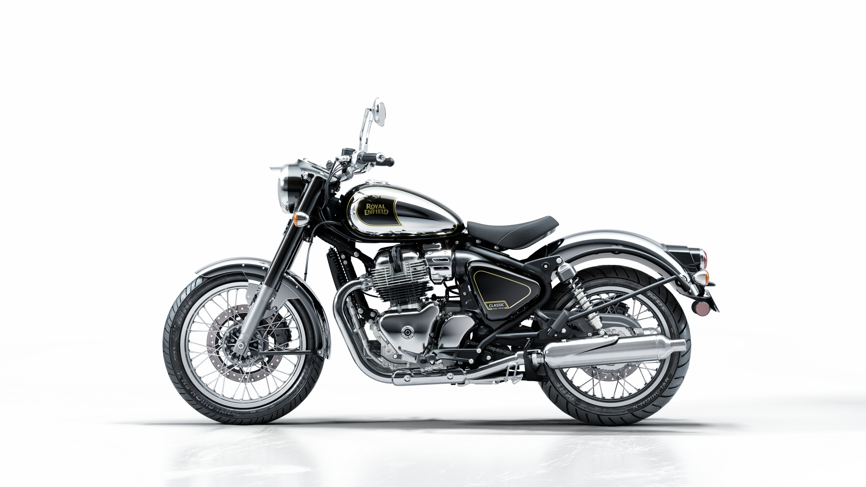 Zajímavosti: Tento model je rozšířením nové linie 650 motocyklů a svým názvem navazuje na původní Classicy 350. Nový dvouválec je průlomovou novinkou pro „klasiky“ – poskytuje dvojnásobný výkon, aniž by obětoval charakter. Technicky má zadní sedlo uchycené na šrouby, takže spolujezdec může být jednoduše odpojitelný pro čistý jediný svět cruisingu. Model přináší i extra detaily jako LED blinkry v ušlechtilé úpravě a prvek rychlého uvolnění výfuku. Royal Enfield zdůrazňuje odkaz na „dvojitou povahu“ klasiky – starobylý vzhled, ale se současnými standardy (ABS, indikátorem rychlosti v displeji). Jako kuriozitu lze zmínit, že Classic 650 nabízí širší kola (100/90-19 vepředu a 140/70-18 vzadu) než Classic 350, což zlepšuje stabilitu. Je to v podstatě Grand Classic – větší a robustnější verze s retro stylem šedesátých let.