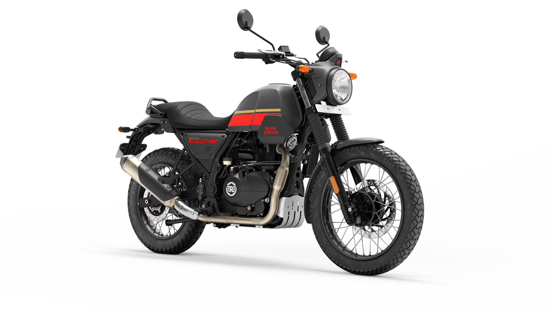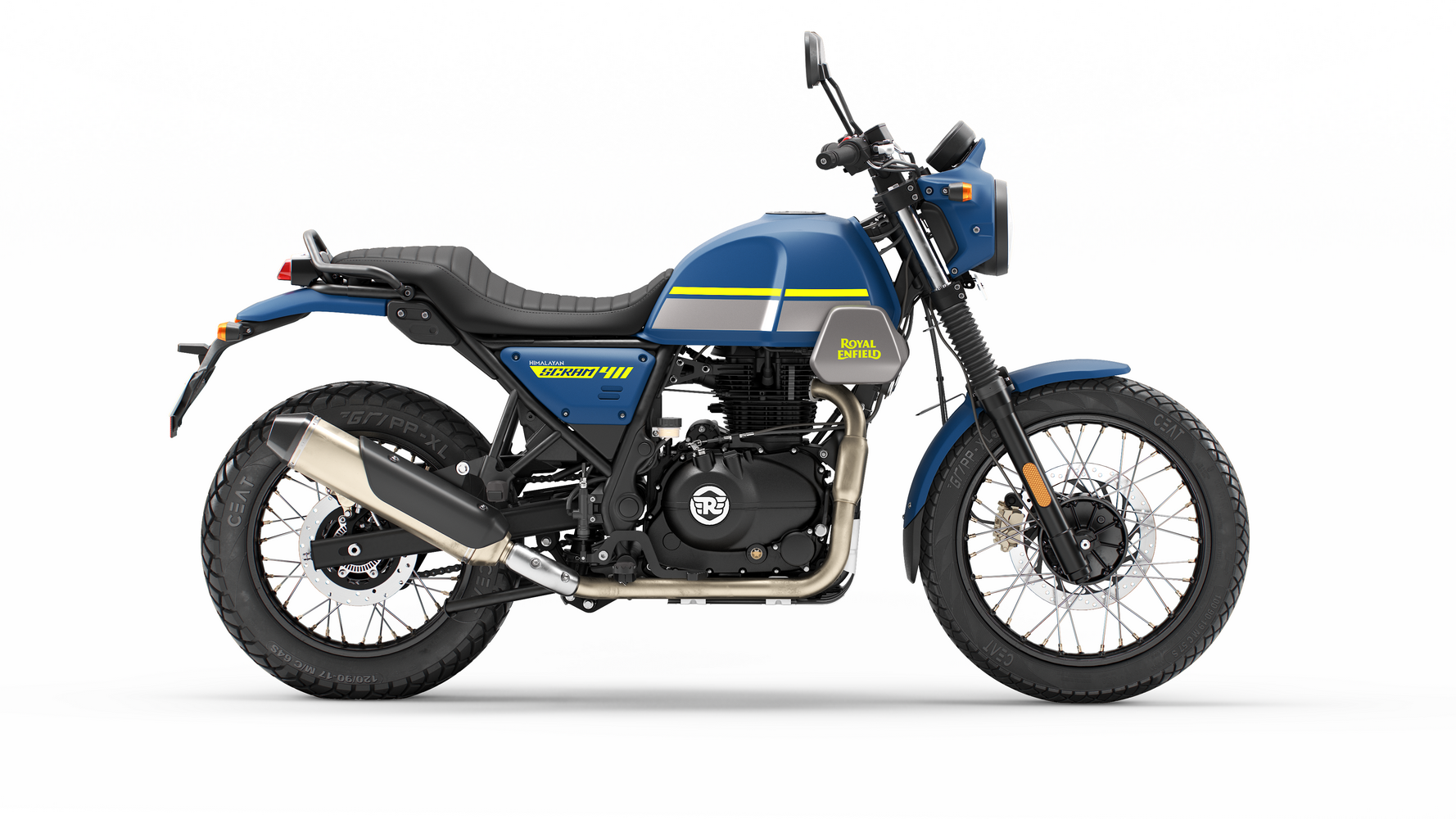 Zajímavosti: Název Scram odkazuje na tradici scramblerů – motorek určených pro zábavnou jízdu v terénu. Tento model vychází z Himalayanu, ale nabízí nižší hmotnost a civilnější zaměření. Scram zdědil lehký rám a odolné kolo z trailových modelů, přidal však moderní prvky jako LED světla a možnost instalovat kufry. Výrobce motorku popisuje heslem “Anything, Anytime, Anywhere”, tedy univerzální stroj pro jakoukoli situaci. Profil Scramu je zaměřený na radost z jízdy – má živou grafiku a slogan „Born From Adventure, Tuned For Play“, čímž zdůrazňuje hravost. Scram 440 tak spojuje dobrodružnou podstatu s praktičností městského motocyklu.
